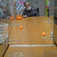 大きさの違うボールを9つのかごめがけて投げます。縦横ななめのビンゴをめざします。1ビンゴ100点。ボールは思いがけずバウンドするので思うようにかごに入りません。なんとパーフェクトの方がいらっしゃいました。 Xperia™ …