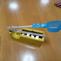 手作りカタパルト装置を使ってモールを飛ばして、カップに入れるゲーム。指先の力が必要になってきます。モールがカップに入るかどうかは運次第なゲームです。