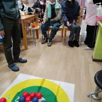 ボッチャとカーリングを合わせたゲー厶を行いました。終わって1月分表彰式を行いました。