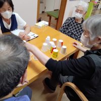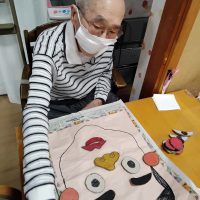 今日のレクリエーションの様子 ピンポン玉何処だゲーム、パズルゲーム、福笑いを行いました。