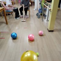 昨日のレクリエーションはボールを追い出せゲームです。