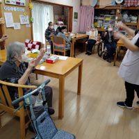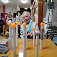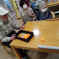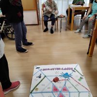 今日のレクリエーションは、ハロウィンお手玉のっけゲームです。