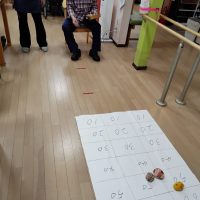 今日のレクリエーションはお手玉数字乗せゲームです。