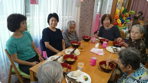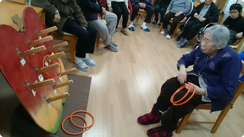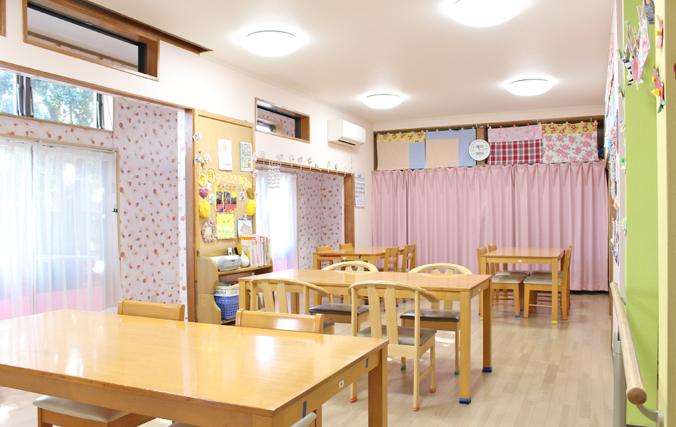フロアゲーム・カラオケ・ぬり絵など、手足を動かし頭を使う活動を行っています。また、お誕生日会や季節の移り変わりを感じる各種イベントを開催しながら、一年を通して楽しんでいただけるよう工夫しています。レクリエーションへの参加を好まれない方には、ご利用者様に合わせた活動をご用意しますのでお申しでください。